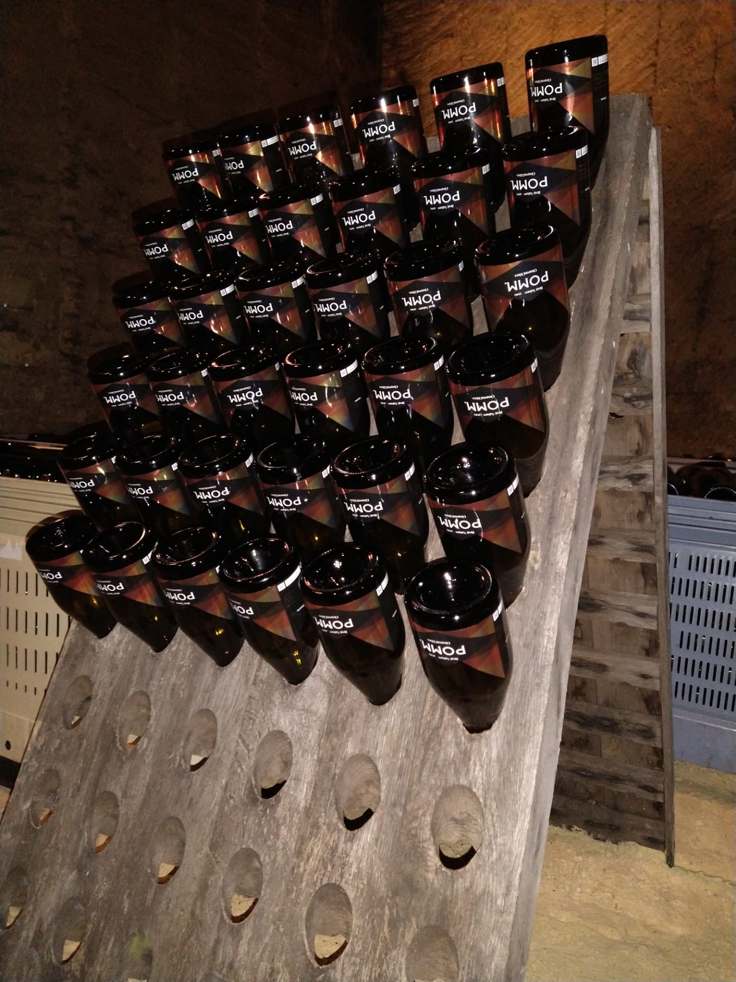 Dat POMM. absoluut niet moet onderdoen voor een Champagne, is al duidelijk. Bij Cleuren Cuvées wordt de méthode traditionelle erg serieus genomen, en een belangrijk aspect hiervan is de remuage. Dit is het proces van de flessen na de rijping dagelijks een kwartslag te kantelen, zodat het sediment van gisten bovenaan de hals komt te zitten. Dit sediment wordt door het bevriezen ervan uit de fles gehaald.