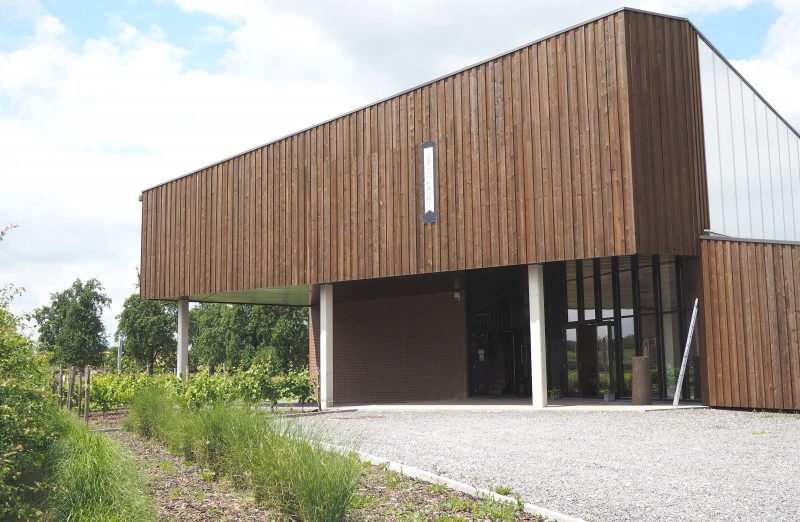 Het gebouw waarin de wijnkelder van Vin de Liège zich bevindt, voldoet niet alleen aan alle technische vereisten, maar is ook de weerspiegeling van de waarden die de coöperatieve koestert. Zo ontwierp architect Jean-Marc Schepers een gebouw met een organisch design, dat een perfecte harmonie vormt met het omringende landschap dankzij onder meer het magnifieke groendak.