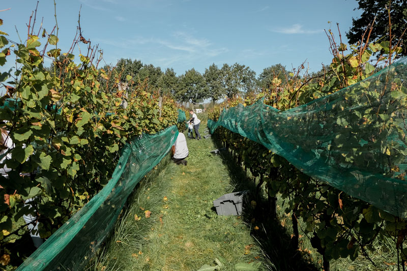 Als laatste werden de rijpste Pinot Auxerrois geplukt, voor onze cuvée op Acacia houten vaten met spontane vergisting