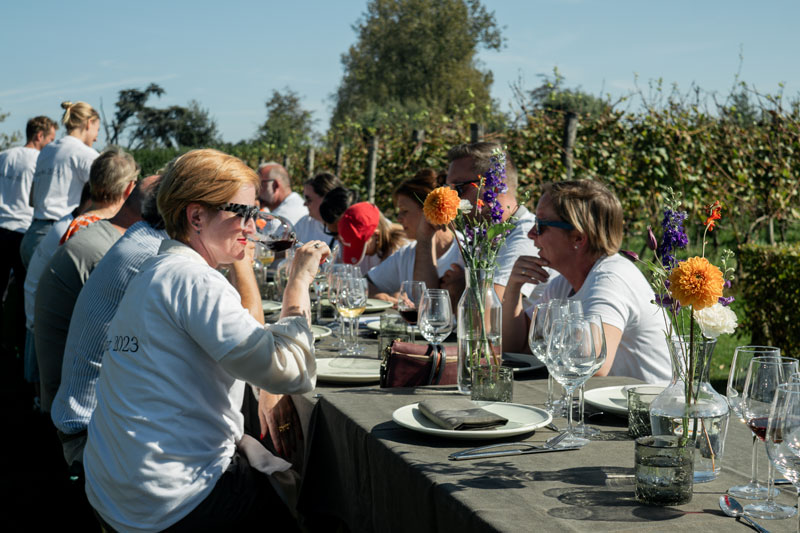Op 1 oktober vierden we samen met 120 wijnliefhebbers het einde van de oogst. Wijngaardenier Bram nam hen mee de wijngaard in om samen de laatste trossen te plukken. In de wijnmakerij legde wijnmaker Pieter het verdere proces uit en kon iedereen al proeven van het eerste druivensap. Dat smaakte alvast naar meer, maar hiervoor hebben we nog even geduld nodig! Tussen de wijnranken werd en primeur ook de nieuwste Valke Vleug cuvée, de Pinot Auxerrois-Chardonnay 2022 voorgesteld en geproefd. #comingsoon!